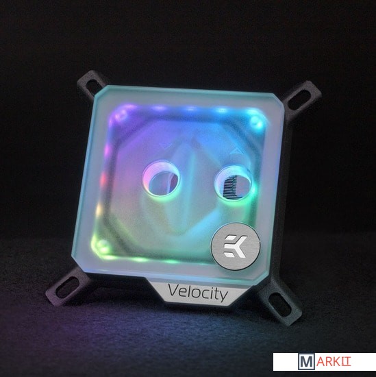 EK-Velocity - это новый высокопроизводительный флагманский водоблок для современных процессоров Intel. Он имеет уникальную матовую акриловую поверхность, которая рассеивает 20 адресуемых светодиодов и визуально совмещается с матовыми / сатиновыми трубками. Осветительное решение водяных блоков подключается к стандартному 3-контактному разъему D-RGB на 5 Вольт.Ограничение потока позволяет использовать эту модель с более слабыми водяными помпами или на низких скоростях для дополнительной бесшумной работы, при этом обеспечивая максимальную производительность. Водоблок также поставляется с самой сложной на сегодняшний день реализацией системы RGB-подсветки. 20 светодиодов размещены под крышкой, которая подключается к стандартному 3-контактному 5-вольтовому разъему D-RGB.Модель оснащена встроенной в верхнюю часть струйной форсункой, которая в сочетании с более массивной форсункой обеспечивает более точное управление помпой. Упрощенная конструкция водоблока обеспечивает оптимизированный поток охлаждающей жидкости и легкое обслуживание, а сменная пластина создает наилучший контакт с популярными и HEDT Intel платформами.EK-Velocity D-RGB - Nickel + Plexi оснащен универсальным механизмом монтажа, позволяющий установить его без использования инструментов. Поддерживаются разъемы Intel LGA-115x и LGA-20xx.Модель совместима со всеми популярными технологиями синхронизации RGB от основных производителей материнских плат. Маркировка стрелки на 3-контактном светодиодном разъеме должна быть совмещена с маркировкой + 5В на заголовке RGB.Длина RGB кабеля: 30 смКоннектор RGB: 3-pin (+5V D G)Совместимость с процессорами:- Intel LGA-1150/1151/1155/1200- Intel LGA-2011(-3)- Intel LGA-2066Комплектация:- водоблок процессора EK-Quantum Velocity- универсальный механизм крепления процессора PreciseMount- шестигранный ключ на 2.5 мм- Jet J2 (толщиной 0.8 мм)- термопаста Thermal Grizzly Hydronaut (1 г)
